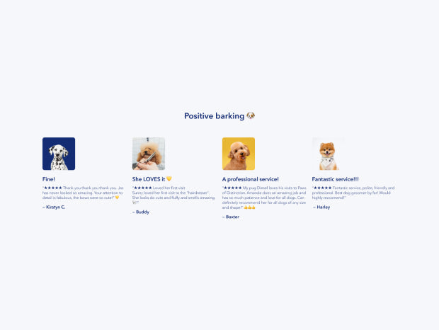 Must have reviews section with texts and images.