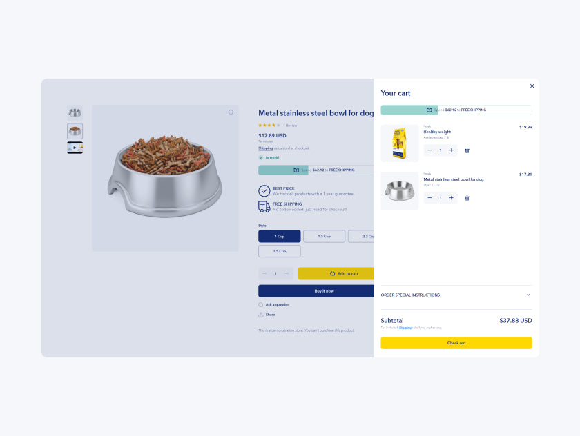 Stock countdowns and free shipping progress bar